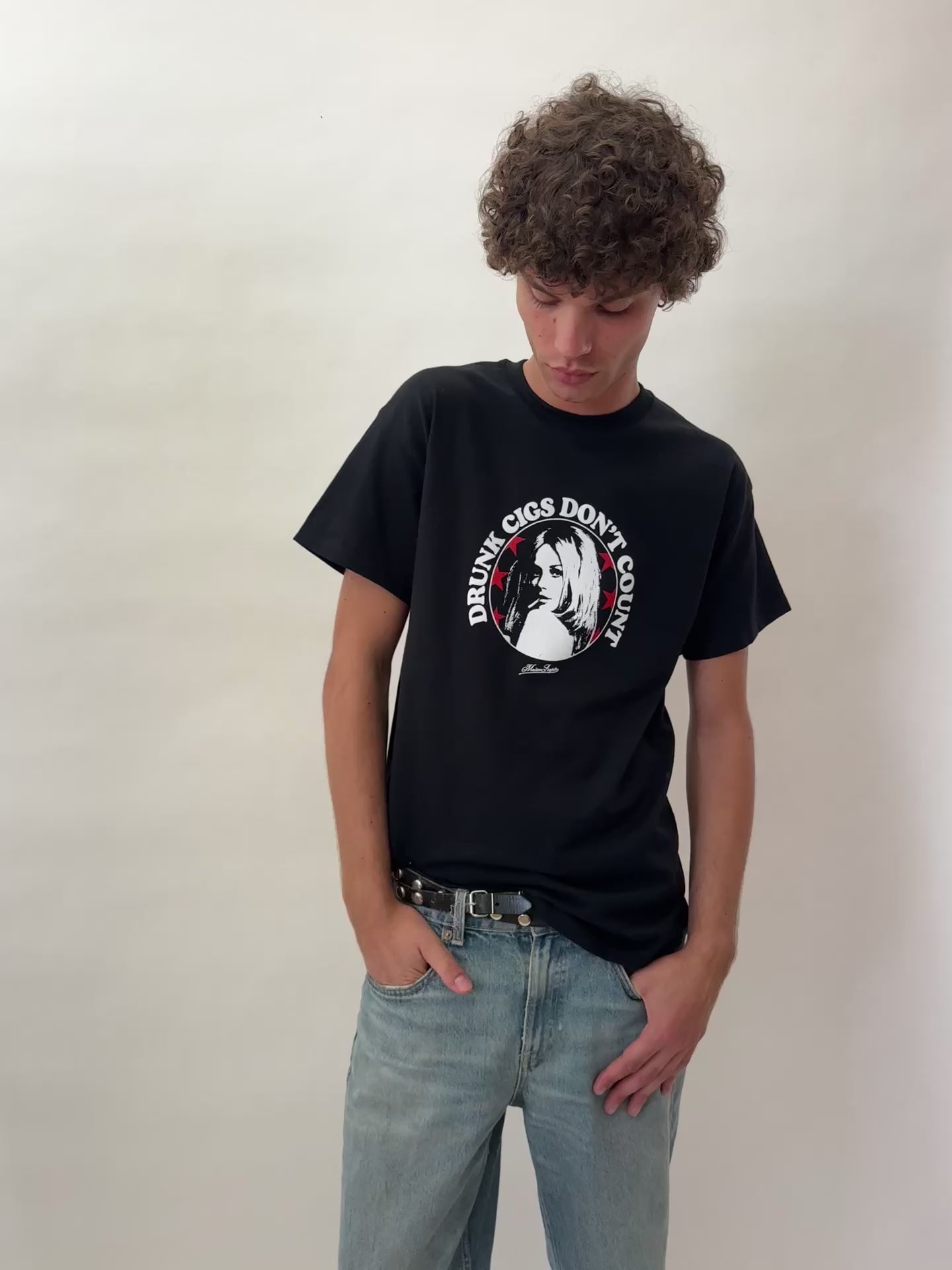 Made in Italy from 100% premium cotton, this black tee is all about weekend chaos. Featuring a bold graphic print with retro vibes, it’s the kind of piece that doesn’t judge your Saturday night choices. Regular fit, soft hand feel, and attitude built in.