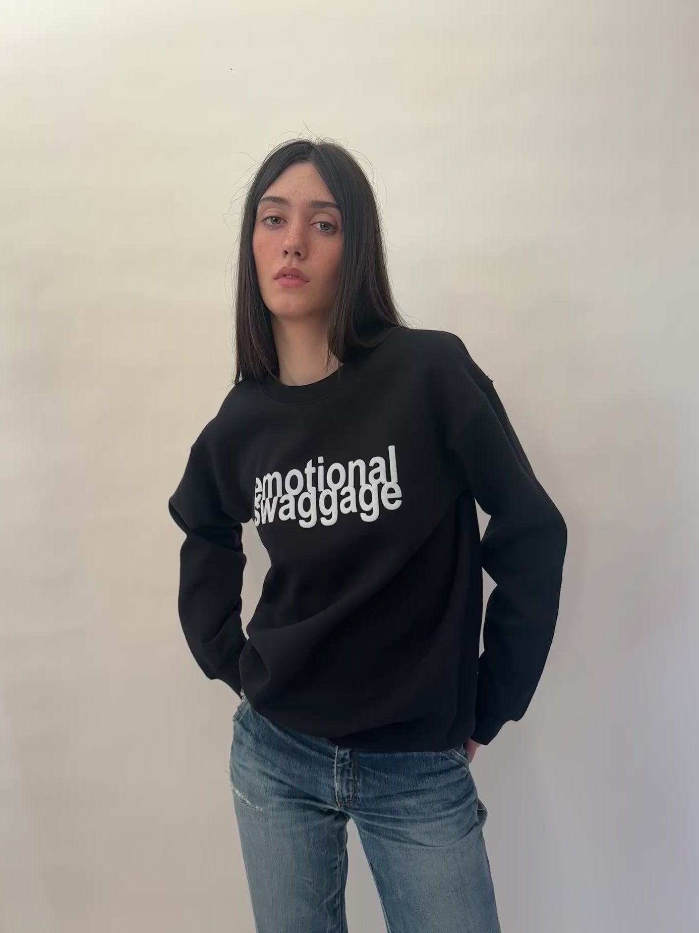 Heavy on comfort, light on bullshit. The Emotional Swaggage Crewneck takes the classic black sweatshirt and injects it with raw attitude. Made in Italy with a cotton-poly mix (260 gr.), it’s soft, durable, and versatile enough to back you up through every mood swing. Because real style isn’t about hiding emotions—it’s about wearing them.