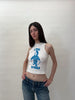 Playful and irreverent, this ribbed tank is made in Italy from stretch cotton. The blue print graphic makes it loud and unapologetic—just like you. Fitted cut, cropped hem, endless attitude.